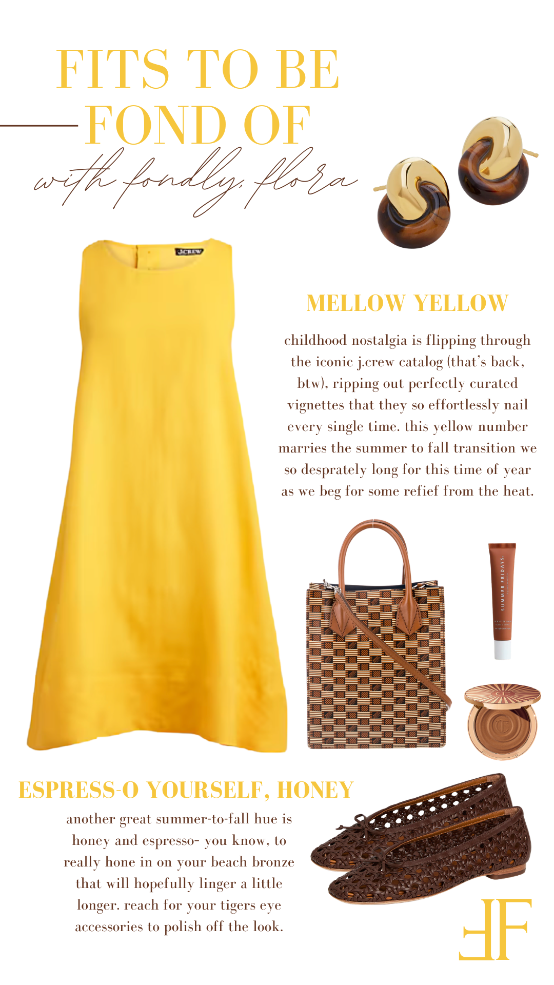 Then come the rich, grounding accents—because what’s honey without a little espresso? The woven bag and ballet flats bring in that deep, chocolatey warmth that makes the whole look feel intentional instead of overly sweet. It’s the perfect balance: light meets depth, summer meets fall, sweetness meets a little edge.